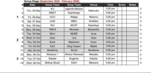 According to the fixture list defending champions Uganda Martyrs who were grouped in group A will travel to Kampala University in the opening game of the competition to be hosted at Hamz Stadium in Nakivubo on Thursday, 25th September, 2025.