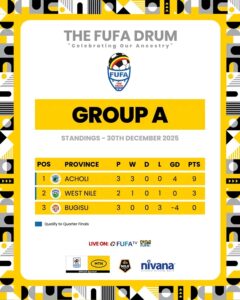 Bugisu is bottom placed with no point. Acholi have already sealed a place in the knockout stage of the event.