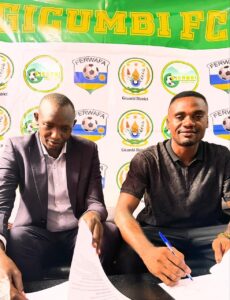 Osomba putting pen to paper as a new Gicumbi FC player. Photo/Courtesy